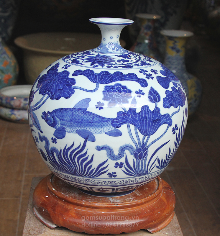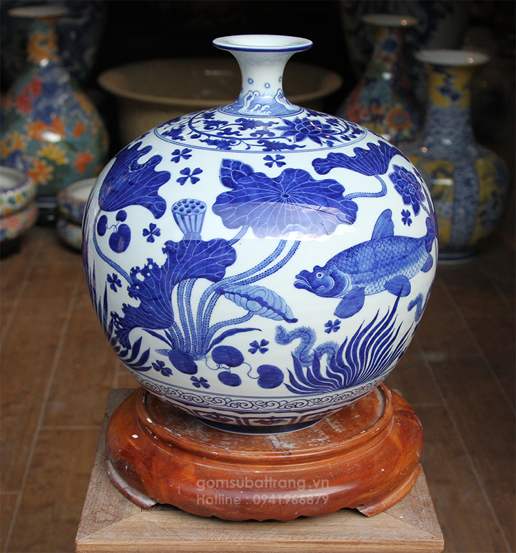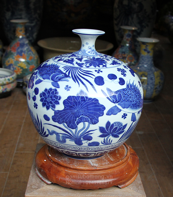 Theo phong thủy, các loài hoa sen thường được dùng để tăng thêm vượng khí cho gia chủ. Trưng bày những đồ vật có họa tiết hoa sen sẽ giúp không gian trở lên trong lành, thanh tịnh, ấm cúng và nhẹ nhàng hơn. Bình hoa đẹp cho phòng khách vẽ họa tiết hoa sen không chỉ có tác dụng hút tài lộc mà còn tăng cường cát khí, bảo vệ sức khỏe cho các thành viên trong gia đình, gỡ bỏ mọi phiền ưu, giúp gia chủ tâm yên, an hưởng hạnh phúc. Hình ảnh thủy cung đại diện cho nguồn thủy khí. Ông cha ta từ xưa đã có câu “Sơn quản nhân đinh, thủy quản tài lộc”. Bởi vậy, trong phong thủy, “Thủy” tượng trưng cho dòng chảy tiền tài và sự giàu có. Đặt bình hoa đẹp cho phòng khách này trong nhà sẽ đồng nghĩa với việc của cải, tài lộc và vận may trong việc làm ăn kinh doanh được kích hoạt. bình hoa đẹp cho phòng khách, bình hoa đẹp cho phòng khách