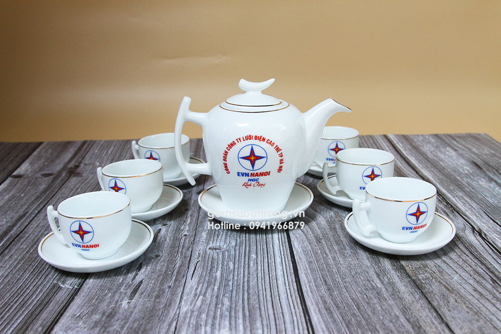 Thiết kế: Đảm bảo rằng thiết kế của ấm chén hài hòa với logo và màu sắc thương hiệu của bạn.