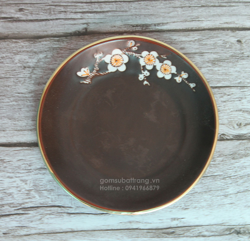 Đĩa đựng tách được vẽ tay vô cùng tỉ mỉ hình ảnh hoa đào tạo nên điểm nhấn độc đáo cho bộ sản phẩm thêm sang trọng, quý phái