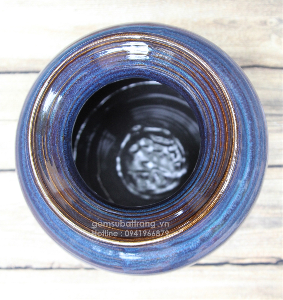 Lớp men lam được tráng sáng bóng ngay cả ở phía bên trong của lọ cắm hoa nghệ thuật