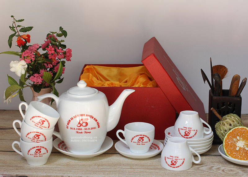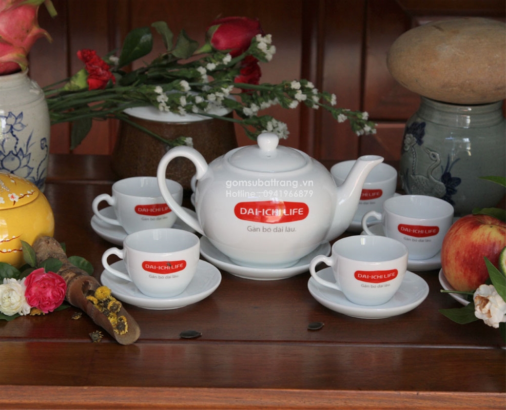 Ấm chén in logo nổi bật như một lựa chọn tuyệt vời không chỉ vì tính thực tiễn mà còn vì sự tinh tế và ý nghĩa mà nó mang lại. Khi bạn tặng một bộ ấm chén in logo, bạn không đơn thuần trao tặng một món quà, mà còn gửi gắm thông điệp, giá trị và sự tri ân. Dưới đây là những gợi ý thú vị về ý tưởng để bạn có thể tạo ra những món quà ấn tượng và đáng nhớ với ấm chén in logo.
